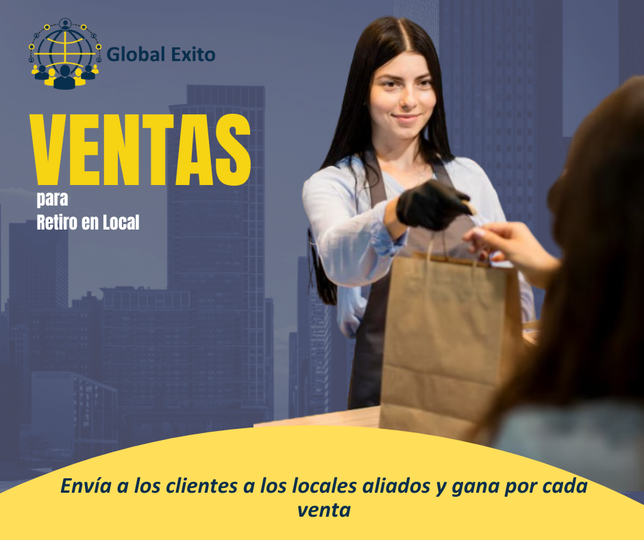 El modelo de retiro en local te permite generar ventas desde tus redes o contactos, el cliente retira y paga todo directamente en el local.